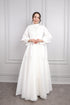 فستان سهرة شيفون للمحجبات باكمام بالون وتطريزات لامعة -ابيض