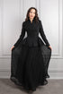 طقم تنورة بتكسيرات وجاكيت مزين بتطريزات خرزية ورود -اسود