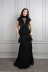فستان سهرة خناقي بتصميم شفاف وكشكشة مع تطريزات خرزية -اسود