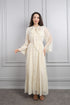 فستان شيفون بتفاصيل دانتيلية بياقة تنربط مع حزام عالخصر -سكري