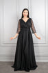 فستان سهرة ساتان بجزء علوي مطرز مع حزام عالخصر مقاس كبير -اسود