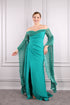 فستان سهرة مكشوف الاكتاف مطرز بالخرز وتفصيل ذيل عند الخصر -اخضر