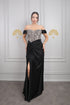 فستان سهرة مكشوف الاكتاف مطرز بالكريستالات مع تفصيل عقدة -اسود