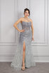 فستاننا المصمم خصيصًا ذو الحمالة الواحدة مطرز بالكامل بالكريستالات. مصمم بتصميم شكل سمكة، ويمنح مظهرًا أنيقًا مع ذيله الذي يمتد من الخصر إلى الأسفل. يتميز بفتحة كبيرة ، مما يجعل فستاننا يتألق في مناسباتك الخاصة.