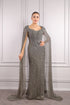 فستان سهرة بياقة مستطيلة واكتاف كاب مزينة بالكريستال والخرز من "المجموعة الخاصة" -رمادي داكن
