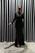 فستان سهرة بتفاصيل شفافة على الياقة وفتحة مرصعة بالترتر من "المجموعة الخاصة" -اسود