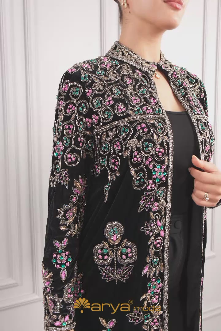 كيمونو مطرز بالخرز بياقة عالية من "المجموعة الخاصة" -اسود