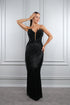 فستان سهرة سترابلس بياقة مفتوحة وتصميم اوراق أمامية مطرزة بالخرز من "المجموعة الخاصة" -اسود