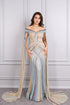 فستان سهرة مكشوف الاكتاف بكايب من الكتف مطرز بالكامل بالفصوص من "المجموعة الخاصة"