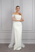 فستان سهرة مكشوف الاكتاف مع تفاصيل لؤلؤية وكاب من الكتف -سكري