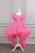 فستان اطفال بذيل وكشكشة وحزام كريستالي -وردي