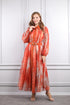 فستان شيفون مزخرف مقاس كبير بياقة قميص وحزام عند الخصر -برتقالي
