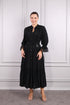 فستان ميدي مقاس كبير مع حزام على الخصر وتفاصيل أزرار في الأمام -اسود