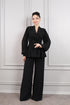 طقم بنطال وبلوزة مطرزة بالخرز باكمام بالون -اسود