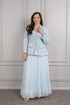 طقم تنورة تول وجاكيت بقماش التويد مطرز باللؤلؤ مع حزام على الخصر -ازرق