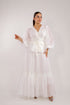 طقم تنورة دانتيل مع بلوزة  بأزرار أمامية -ابيض