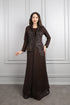 طقم فستان وجاكيت مطرز بالخرز مقاس كبير -بني