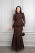 طقم دانتيل خناقي بتطريزات خرزية واكمام شفافة -بني