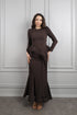 طقم تنورة وتوب مزين بالخرز بتفصيل ذيل من الخصر -بني