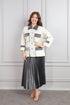 طقم جاكيت بتفاصيل جيوب مع تنورة مكسرة مقاس كبير -رمادي-كريمي