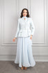 طقم تنورة وجاكيت لامع بحزام لؤلؤي ووشاح -ازرق