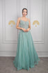 فستان سهرة بحمالات رفيعة وتطريزات كريستالية من "المجموعة الخاصة" -اخضر