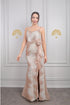 يتميّز هذا الفستان بتصميمه اللافت حيث يبرز بريق الترتر ليكون قطعة جريئة في أي مناسبة. تضفي الحمالات الرفيعة مع فتحة الشق لمسة أنثوية بارزة، بينما يضيف الإكسسوار الزهرة عند الخصر لمسة من الأناقة العصرية. خيار مثالي لمناسباتكم الخاصة، حفلات الزفاف، او لمن تبحث عن إطلالة تخطف الأنظار.