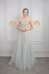 فستان سهرة تول بحمالات رفيعة مطرز بالكريستالات بالكامل من "المجموعة الخاصة" -نعناعي